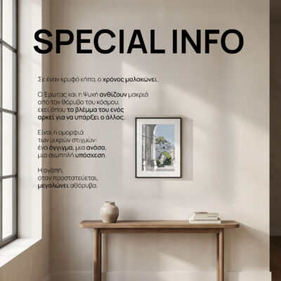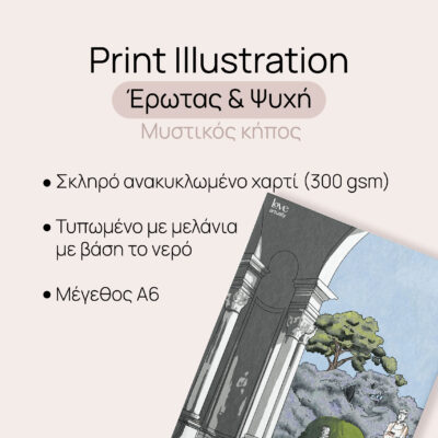 Ο μύθος του Έρωτα και της Ψυχής από την Ancient Greece είναι η απόλυτη αλληγορία για την εξέλιξη της ανθρώπινης καρδιάς. Η Ψυχή καλείται να εμπιστευτεί το αόρατο, ενώ ο Έρως μαθαίνει να μένει χωρίς να αποκαλύπτεται αμέσως. Το #pantheonmeeting μας σε αυτόν τον “Secret Garden” μας διδάσκει ότι κάποια πράγματα ανθίζουν μόνο όταν τους αφιερώνεις χρόνο. Αυτό το print είναι μια υπενθύμιση ότι η αγάπη είναι και πράξη φροντίδας – προς τον άλλον, αλλά και προς την ίδια μας την ψυχή. Είναι η δικαίωση της αναμονής και η ομορφιά της απόλυτης πίστης.
