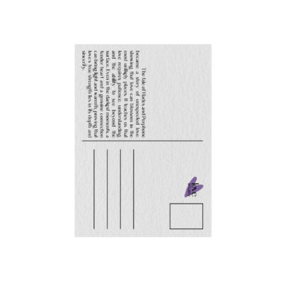 Η αρπαγή της Περσεφόνης από τον Πλούτωνα και ο επακόλουθος συμβιβασμός με τη μητέρα της, τη Δήμητρα, δεν δημιούργησαν απλώς τις εποχές· δημιούργησαν έναν συμβολισμό για την αναγέννηση και τον κύκλο της ζωής. Η Περσεφόνη, περνώντας μισό χρόνο στη γη και μισό στον Κάτω Κόσμο, μας δείχνει ότι η ισορροπία είναι το κλειδί της ύπαρξης. Αυτή η Card Postal αποτυπώνει αυτήν ακριβώς τη μαγική στιγμή όπου δύο αντίθετοι κόσμοι συναντιούνται. Είναι μια ιστορία για την αγάπη που ξεπερνά τα εμπόδια και αποδεικνύει ότι ο έρωτας μπορεί να ριζώσει ακόμα και εκεί που κανείς δεν το περιμένει.