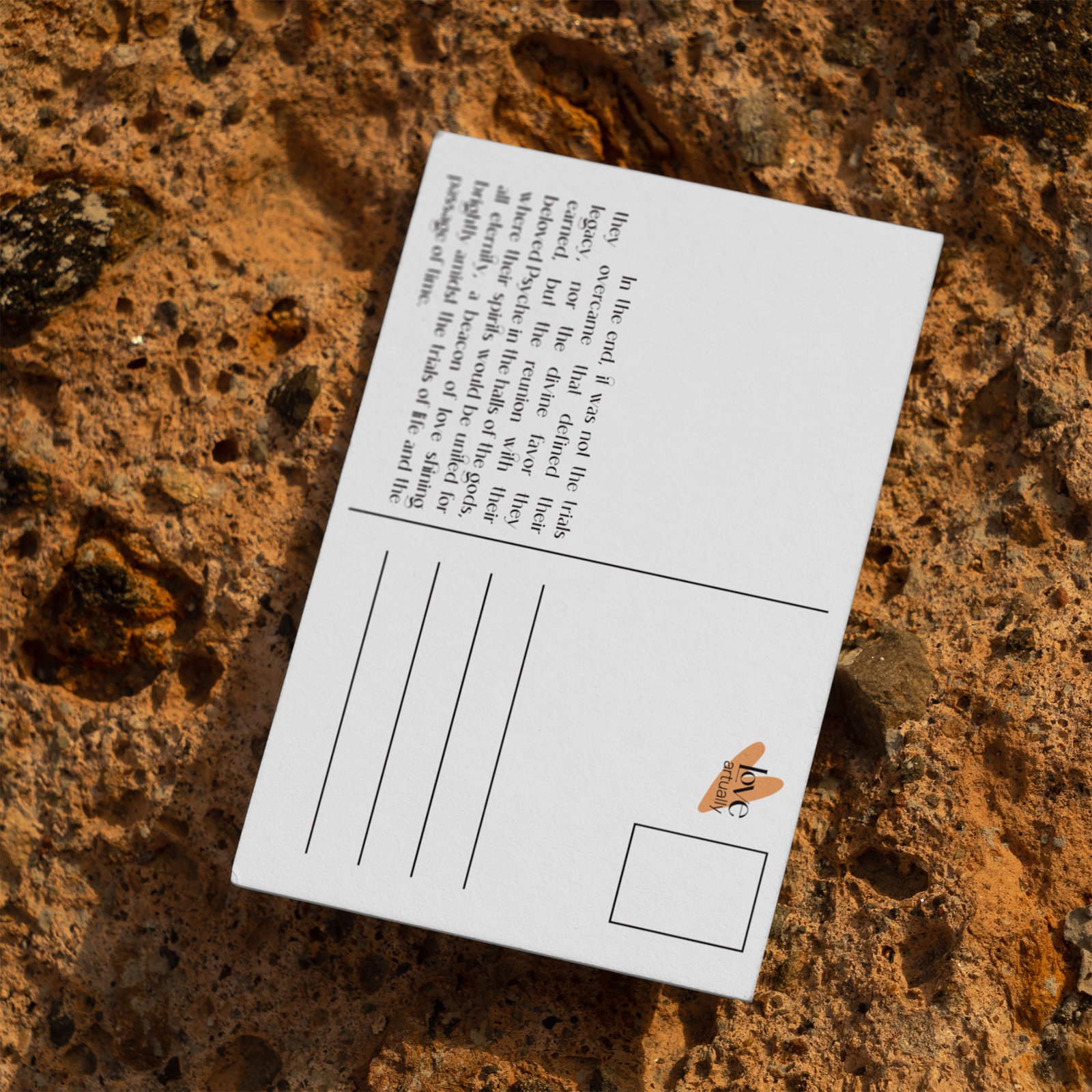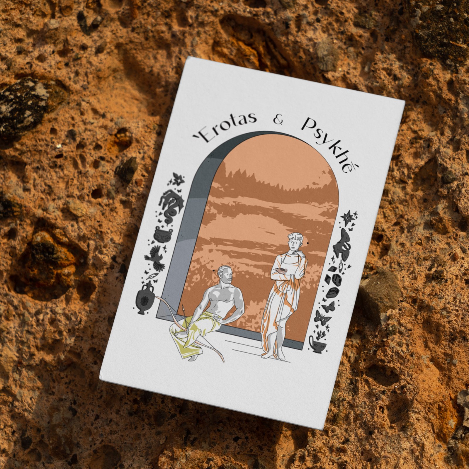 Cupid and Soul, the eternal couple that proves that love requires faith and sacrifice. Their look on the front tells the myth, while on the back, the heart of their story is captured in eco-friendly materials.