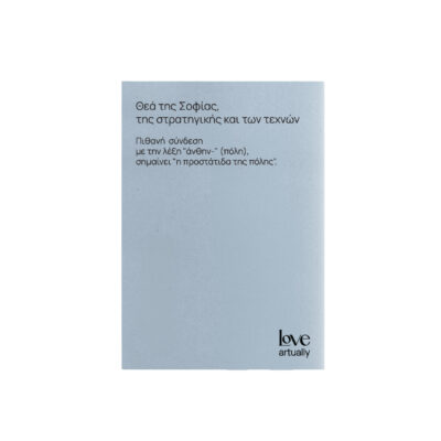 Στο Love Artually, πιστεύουμε ότι κάθε μεγάλη ιδέα ξεκινά από έναν καθαρό στόχο. Το σημειωματάριο Notebook Goddess Athena (Θεά Αθηνά) είναι το δικό μας #pantheonmeeting με τη θεά της σοφίας, των τεχνών και της στρατηγικής. Στην Ancient Greece, η Αθηνά ήταν εκείνη που καθοδηγούσε τους ήρωες όχι μόνο με τη δύναμη, αλλά με την ευφυΐα. Αυτό το notebook σχεδιάστηκε για να γίνει το εργαλείο κάθε σύγχρονου στοχαστή που αναζητά τη διαύγεια και την έμπνευση στην καθημερινή του γραφή.