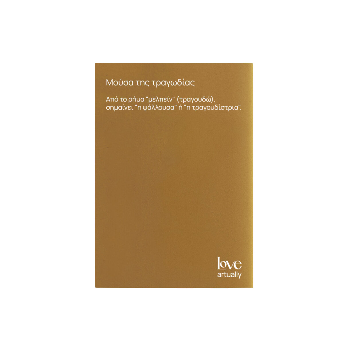 Στο Love Artually, πιστεύουμε ότι κάθε λευκή σελίδα είναι μια ευκαιρία για κάθαρση. Το σημειωματάριο Notebook Muse Melpomene (Μούσα Μελπομένη) είναι η δική μας πρόσκληση σε ένα #pantheonmeeting με τη φωνή της τραγωδίας. Η Μελπομένη, η Μούσα που προστατεύει το δράμα, δεν αντιπροσωπεύει μόνο τη θλίψη, αλλά τη δικαίωση, την τιμωρία, την αγάπη και τα πανανθρώπινα πάθη. Αυτό το notebook σχεδιάστηκε για να γίνει ο φύλακας των δικών σου μυστικών, των στίχων σου και των καθημερινών σου σκέψεων που απαιτούν μια δυνατή φωνή για να εκφραστούν.