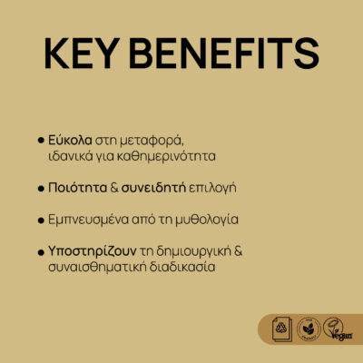 Όπως όλα τα προϊόντα μας, έτσι και το σημειωματάριο της Μελπομένης ακολουθεί τις αρχές της Eco-friendly παραγωγής. Χρησιμοποιούμε χαρτί υψηλής ποιότητας που προσφέρει μια μοναδική εμπειρία γραφής, ενώ το εξώφυλλο διακρίνεται για την έντονη χρωματική του παλέτα και το σύγχρονο εικονογραφικό στυλ που χαρακτηρίζει τη σειρά Modern Myths. Είναι ανθεκτικό, κομψό και έτοιμο να σε ακολουθήσει παντού – από την τσάντα σου μέχρι το κομοδίνο σου.