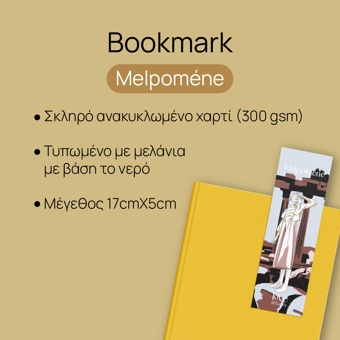 Στο Love Artually, πιστεύουμε ότι κάθε βιβλίο είναι ένα ταξίδι και κάθε αναγνώστης ένας εξερευνητής των ανθρώπινων συναισθημάτων. Ο σελιδοδείκτης Melpomene, εμπνευσμένος από τη Μούσα του αρχαίου δράματος, σχεδιάστηκε για να τιμήσει την τέχνη που μας κάνει να νιώθουμε: το θέατρο και την τραγωδία. Η Μελπομένη δεν είναι απλώς μια μορφή της Ancient Greece· είναι η φωνή που αφηγείται ιστορίες γεμάτες πάθος, δικαίωση και τιμωρία. Είναι η σύντροφος που χρειάζεσαι όταν οι σελίδες του βιβλίου σου γίνονται “δραματικές” και το συναίσθημα ξεχειλίζει.