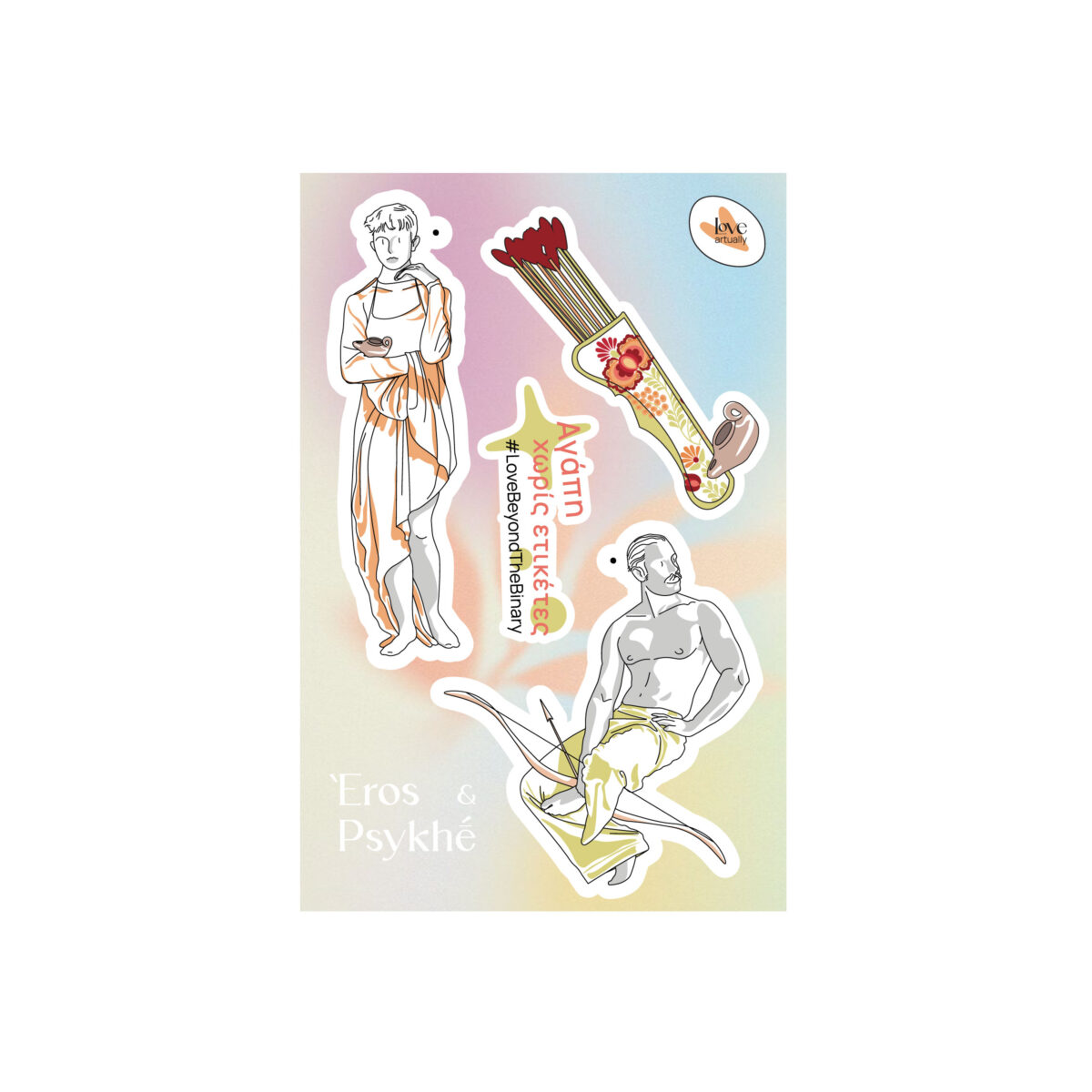 Στο Love Artually, πιστεύουμε ότι οι μεγάλοι μύθοι δεν πρέπει να μένουν μόνο στα βιβλία ή στα μουσεία, αλλά να γίνονται μέρος της καθημερινότητάς μας. Το Sticker Group Eros & Psyche είναι ένα #pantheonmeeting με τον πιο ποιητικό έρωτα της Ancient Greece. Αυτό το σετ αυτοκόλλητων δημιουργήθηκε για να σου θυμίζει ότι η αγάπη είναι μια διαρκής αναζήτηση της ψυχής, μια διαδρομή γεμάτη προκλήσεις που τελικά οδηγεί στην απόλυτη ένωση.