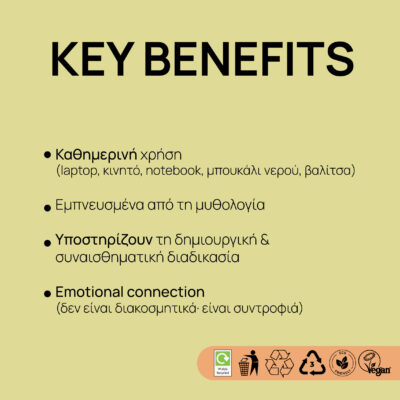 Συχνά οι μικρές λεπτομέρειες είναι εκείνες που κάνουν τη διαφορά. Ένα αυτοκόλλητο μπορεί να είναι μια δήλωση ταυτότητας, μια υπενθύμιση ενός στόχου ή απλώς ένα χαμόγελο μέσα στη μέρα. Το σετ Eros & Psyche είναι το τέλειο δώρο για τους λάτρεις της μυθολογίας, για όσους πιστεύουν στη δύναμη των συναισθημάτων και για όσους θέλουν να κάνουν το δικό τους “Myth Match” με τα αντικείμενά τους. Συνδυάζονται υπέροχα με το Sketchbook Morpheus για να διακοσμήσεις το εξώφυλλο των ονείρων σου.