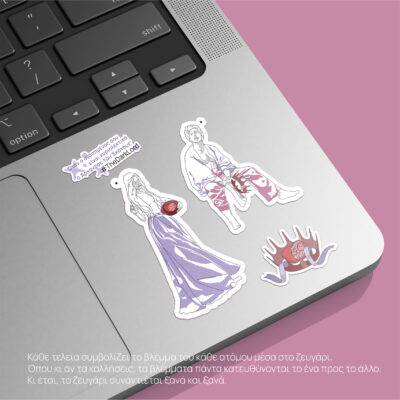Στο Love Artually, η Modern Mythology εξερευνά τις πιο βαθιές πτυχές των αρχαίων μύθων. Το Sticker Group Plouto & Persephone είναι μια ωδή στον Πλούτωνα και την Περσεφόνη, το ζευγάρι που ισορροπεί ανάμεσα στο φως και το σκοτάδι. Με τη χαρακτηριστική γραμμική αισθητική μας και τις τελείες που συμβολίζουν την αιώνια σύνδεση των βλεμμάτων, αυτό το σετ μετατρέπει το laptop, το παγούρι ή το notebook σου σε ένα εικαστικό statement με ιστορία αιώνων.