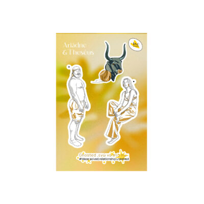 Στο Love Artually, η Modern Mythology επαναπροσδιορίζει τους κλασικούς μύθους για να ταιριάζουν στις δικές σου καθημερινές προκλήσεις. Το Sticker Group Theseus & Ariadne είναι εμπνευσμένο από τον μίτο της Αριάδνης και την τόλμη του Θησέα. Είναι ένα σετ αυτοκόλλητων που μιλά για τη συνεργασία, την εμπιστοσύνη και την ικανότητα να βρίσκουμε την έξοδο ακόμα και στις πιο περίπλοκες καταστάσεις της ζωής μας.