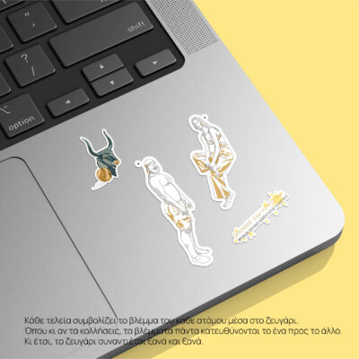 Όπως ο Θησέας χρειάστηκε έναν ισχυρό μίτο για να βγει από τον λαβύρινθο, έτσι και τα προσωπικά σου αντικείμενα χρειάζονται αξεσουάρ που αντέχουν. Χρησιμοποιούμε ανακυκλωμένο πλαστικό υψηλής ποιότητας για να διασφαλίσουμε ότι το Sticker Group Theseus & Ariadne θα παραμείνει αναλλοίωτο. Τα αυτοκόλλητά μας είναι πλήρως αδιάβροχα και διαθέτουν προστασία από την ηλιακή ακτινοβολία, ώστε τα χρώματα και οι γραμμές να μην ξεθωριάζουν, όση χρήση κι αν κάνεις στο laptop ή το παγούρι σου.