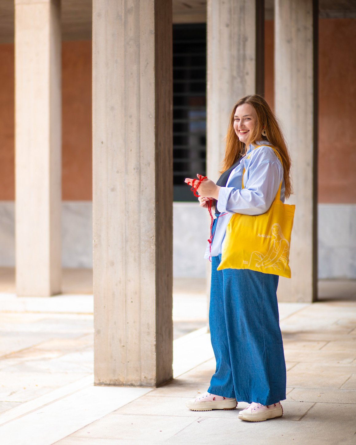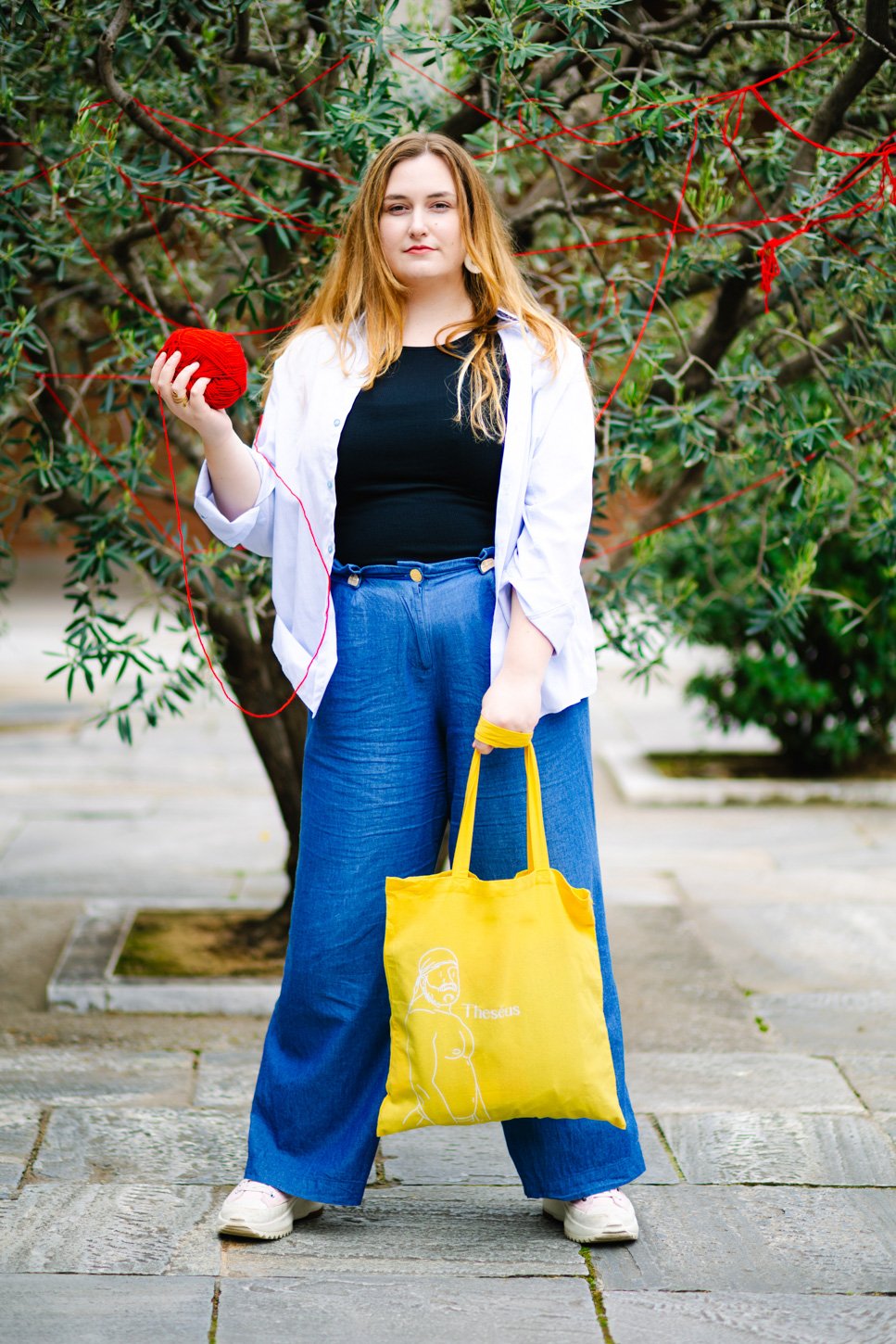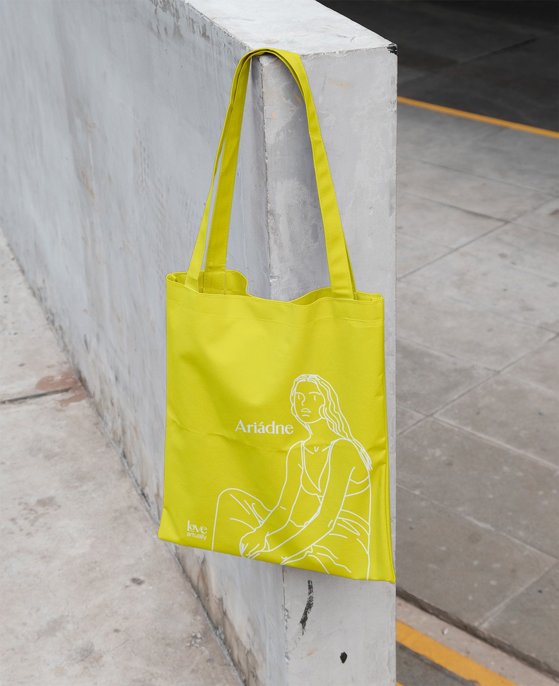 Made from recycled cotton and eco-friendly paints, in a bright yellow that does not go unnoticed, like the footsteps Ariadne left behind in the sand.